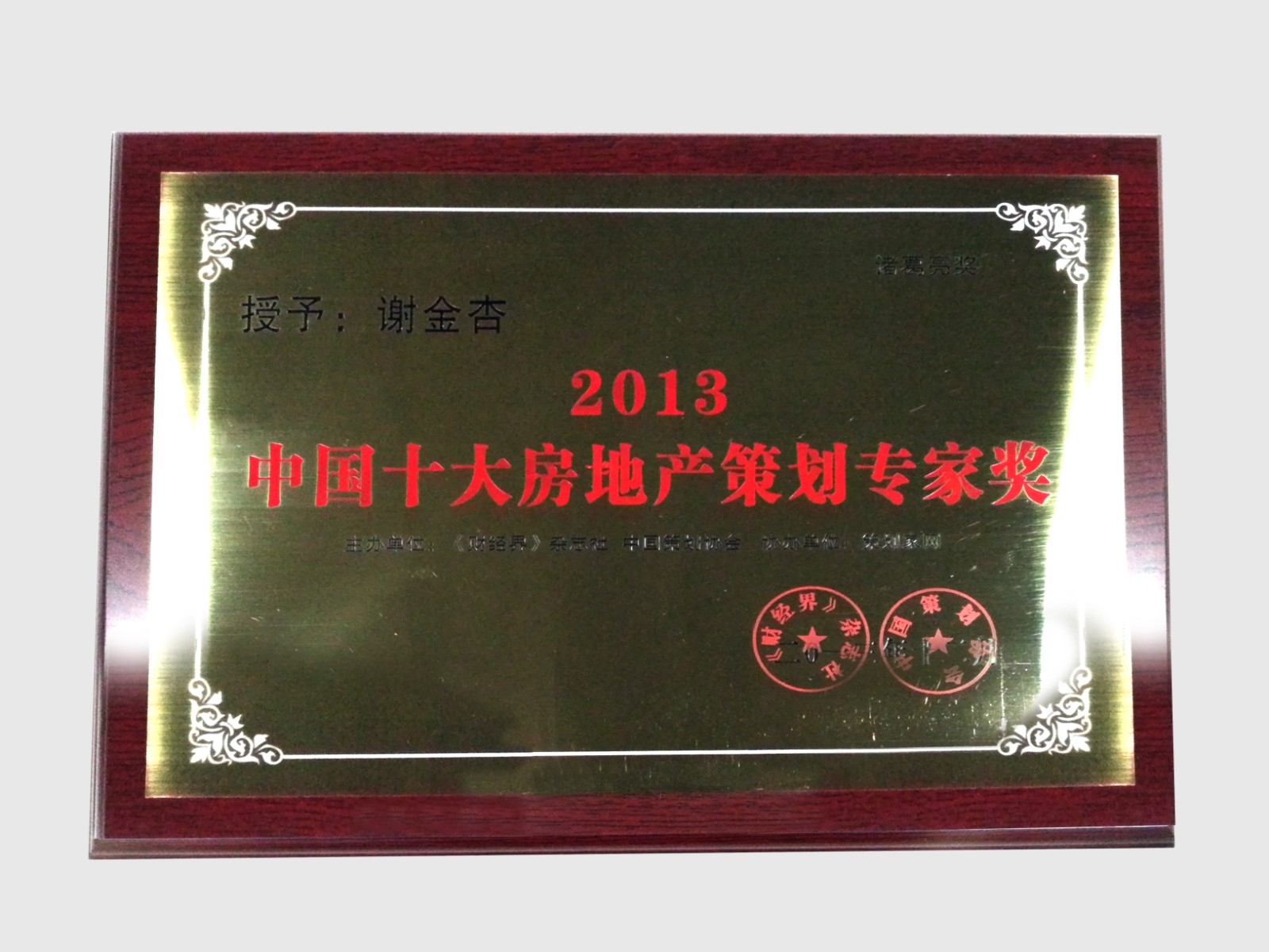 (深圳華錦鴻泰董事長(zhǎng)兼總策劃師謝金杏2013年獲得中國十大房地產(chǎn)策劃專家榮譽(yù)稱號(hào))